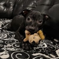 Deaf and ready to please! Affectionate, focused, athletic! Playful, social, affectionate! Playful, Social, Sweet Goofy, happy guy with a head tilt!