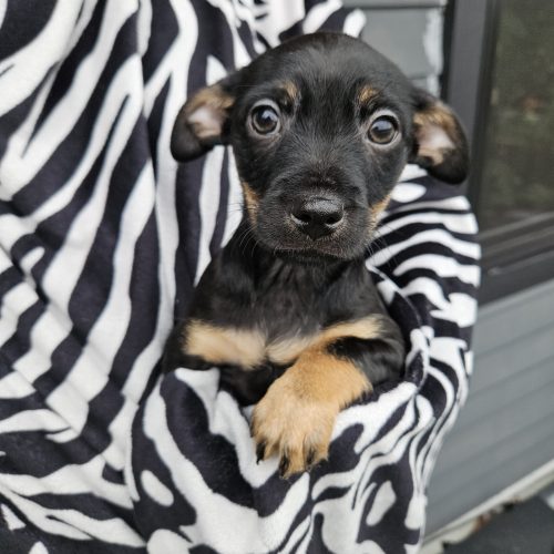 Before adoption, puppies are spayed/neutered, microchipped, flea-treated, and dewormed. They receive vaccination boosters in our care, but adopters will need to complete the remaining vaccine schedule. Your adoption donation covers vet care, transport, and general costs.