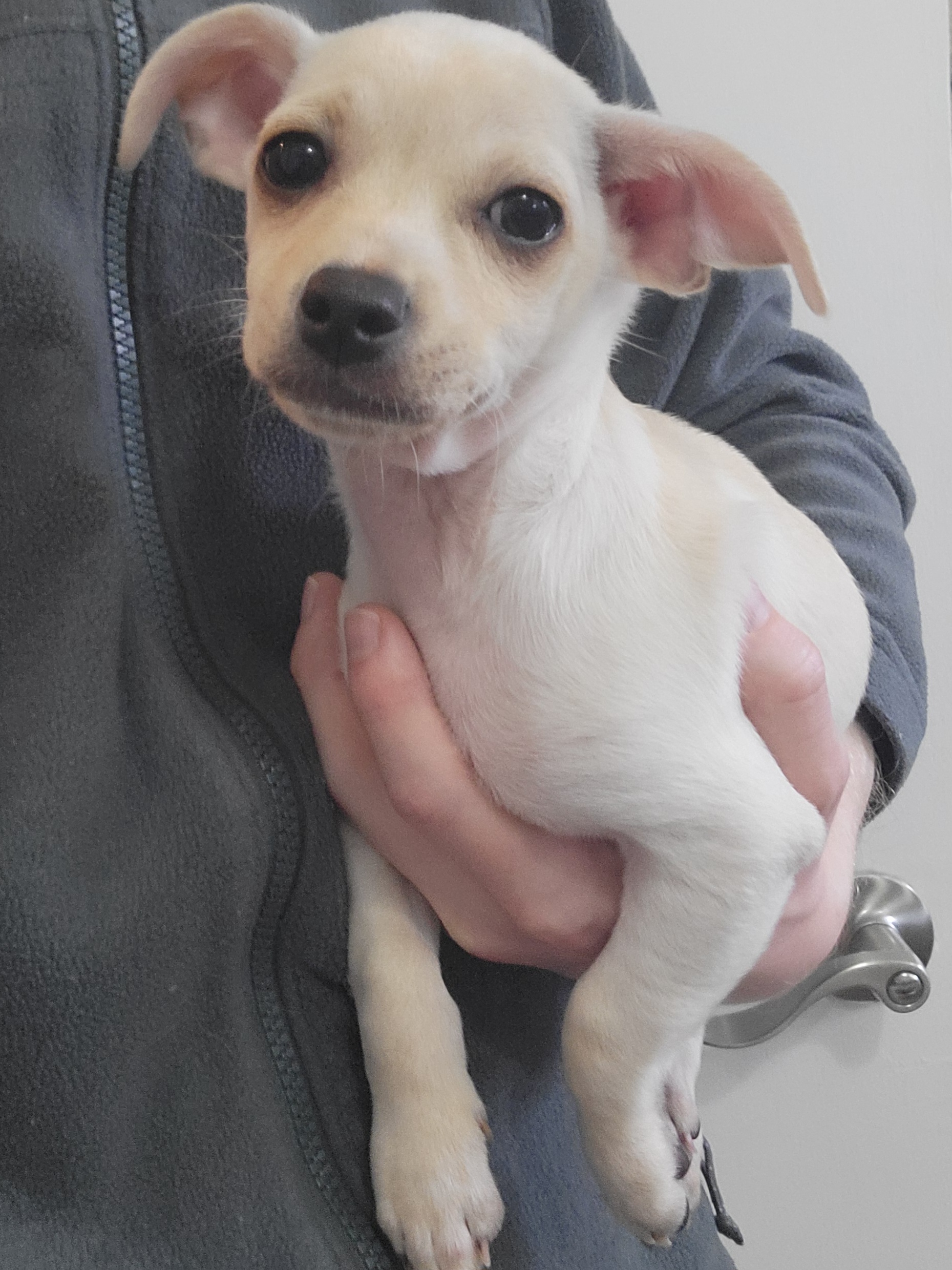 Cameron is curious and has a snuggly “Hold On” heart once he bonds (he likes to literally get into your sweatshirt)- with just enough sass to keep things interesting! He’s at that perfect 8-week-old stage where every day is a new world tour. Socks? Fascinating. Leaves? Groundbreaking. Your lap? VIP backstage access. Play hard- nap harder!