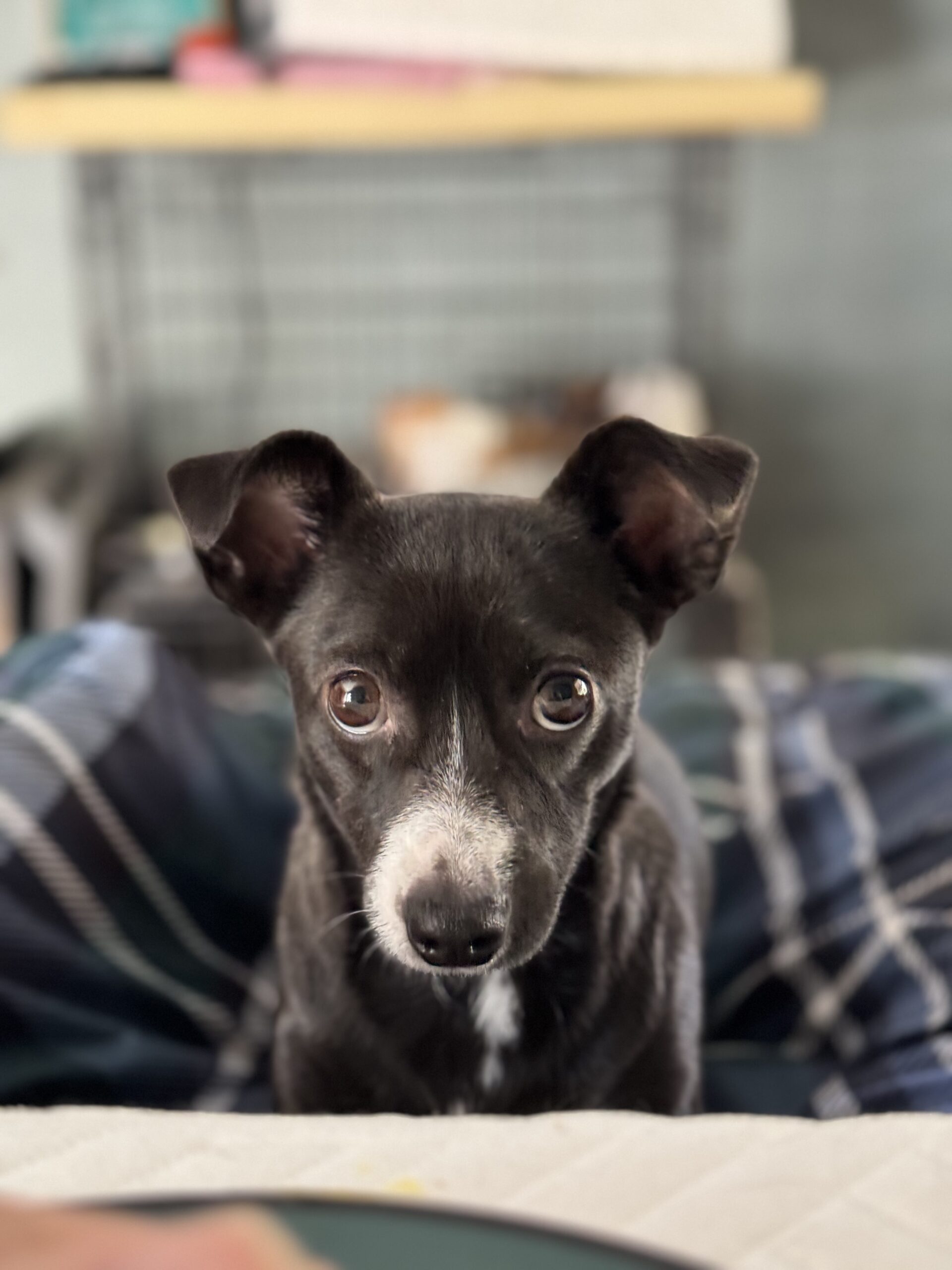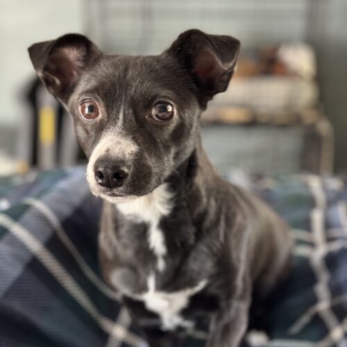 This sweet pup is a gentle soul who absolutely adores other dogs and lights up whenever food or treats are involved. While she’s still very scared of people and needs time, patience, and a calm environment to feel safe, she’s shown that with the right support she can blossom. She takes comfort in the presence of confident canine friends and will happily follow their lead, making her an excellent match for a home with another friendly dog. With slow introductions, positive experiences, and lots of love, she has the potential to become a loyal and deeply rewarding companion.