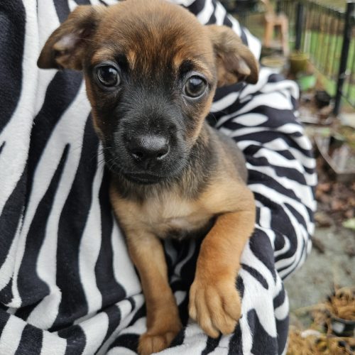 Before adoption, puppies are spayed/neutered, microchipped, flea-treated, and dewormed. They receive vaccination boosters in our care, but adopters will need to complete the remaining vaccine schedule. Your adoption donation covers vet care, transport, and general costs.