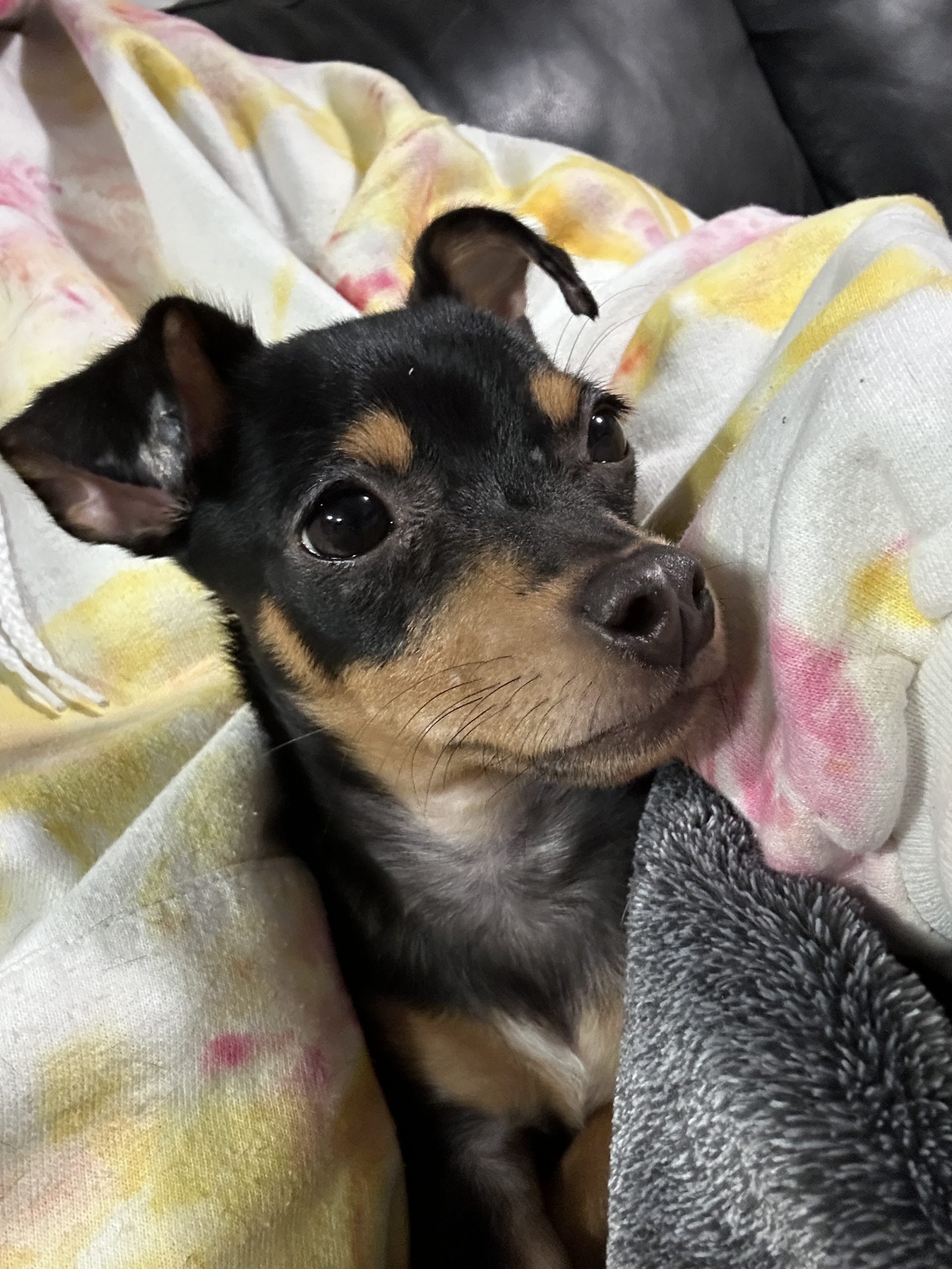 Volbeat is a playful, cuddly, and smart little Chihuahua mix with a big personality packed into a tiny body! He’s equal parts entertainer and snuggle buddy—zooming around the house one minute and curling up in your lap the next.